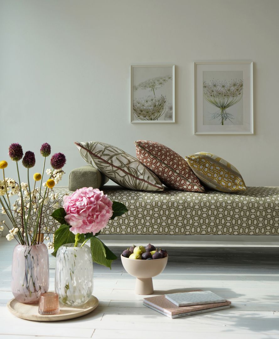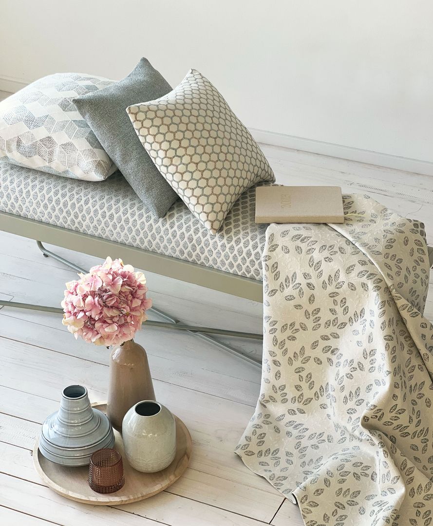 Über Geschmack lässt es sich bekanntlich nicht streiten. Deshalb reden wir auch gar nicht darüber. Vor allem kann sich der Geschmack auch ändern. Um nicht das ganze Sofa wechseln zu müssen, tauschen wir einfach den Stoff. Dafür gibt es ein paar grundsätzliche Qualitäts- und Designrichtlinien. Gemusterte Stoffe haben ihren besonderen Charme, eignen sich aber besonders gut als Solitär. Einerseits verzeihen Muster kleinere Verschmutzungen, andererseits braucht jede Ornamentik ihre Entsprechung und muss mit dem Rest des Raumes harmonieren.
