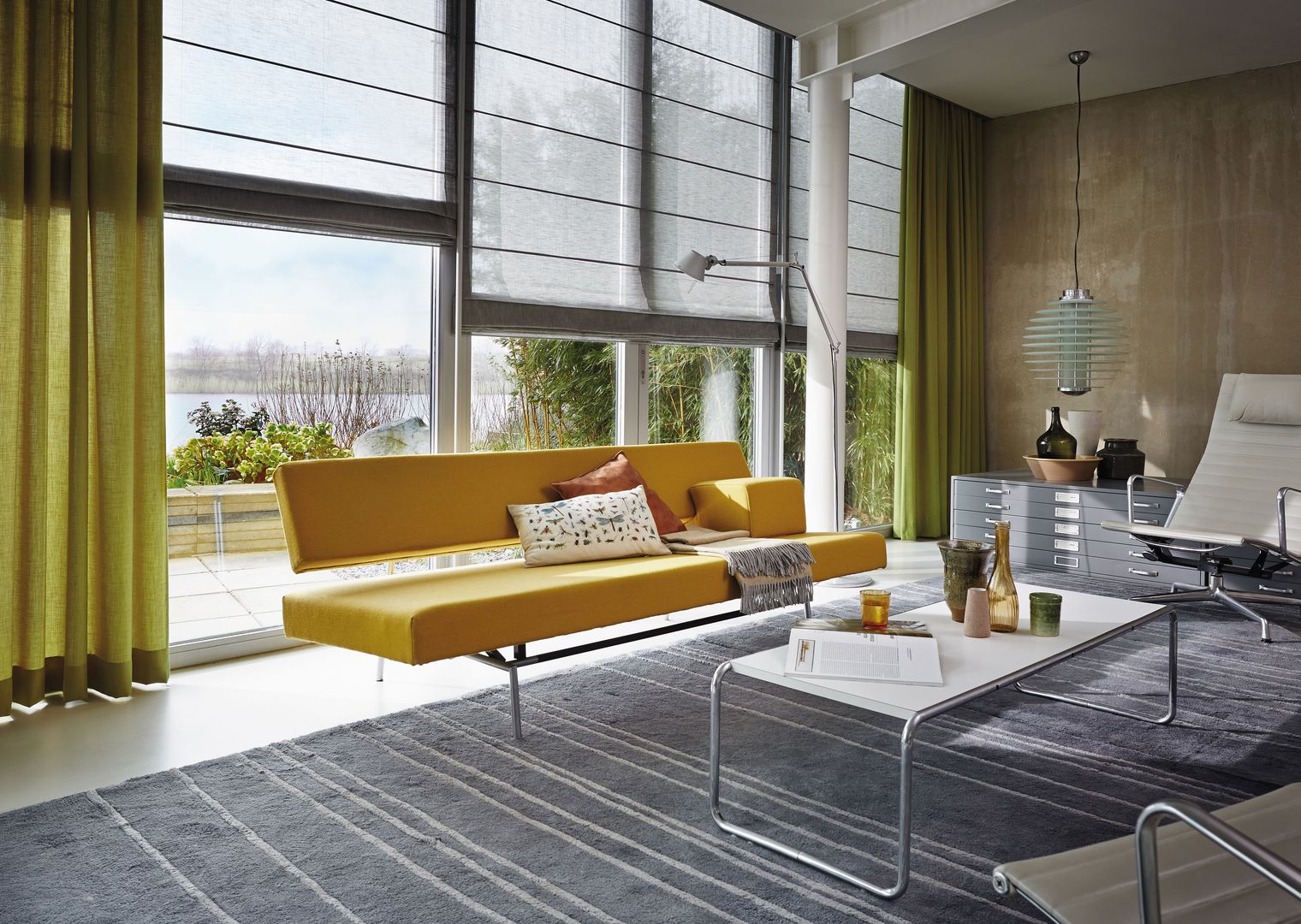 Das Raffrollo ist die perfekte Symbiose aus Technologie, Handarbeit und Kreativität. Individuell ausgewählte Stoffe werden manuell nach Maß zum Faltrollo konfektioniert und erlauben so eine flexible Raumgestaltung. Die Anwendung reicht von konventionellen Fenstern und Terrassentüren über Giebelfenster und gebogene Anlagen bis zu Dachfenstern. Besonders interessant ist, dass beim Raffstore im Gegenzug zum klassischen Vorhang links und rechts des Fensters kaum bzw. kein Platz benötigt wird, um den Stoff zu parken, da die Bahnen nur vertikal und nicht konventionell horizontal bewegt werden.